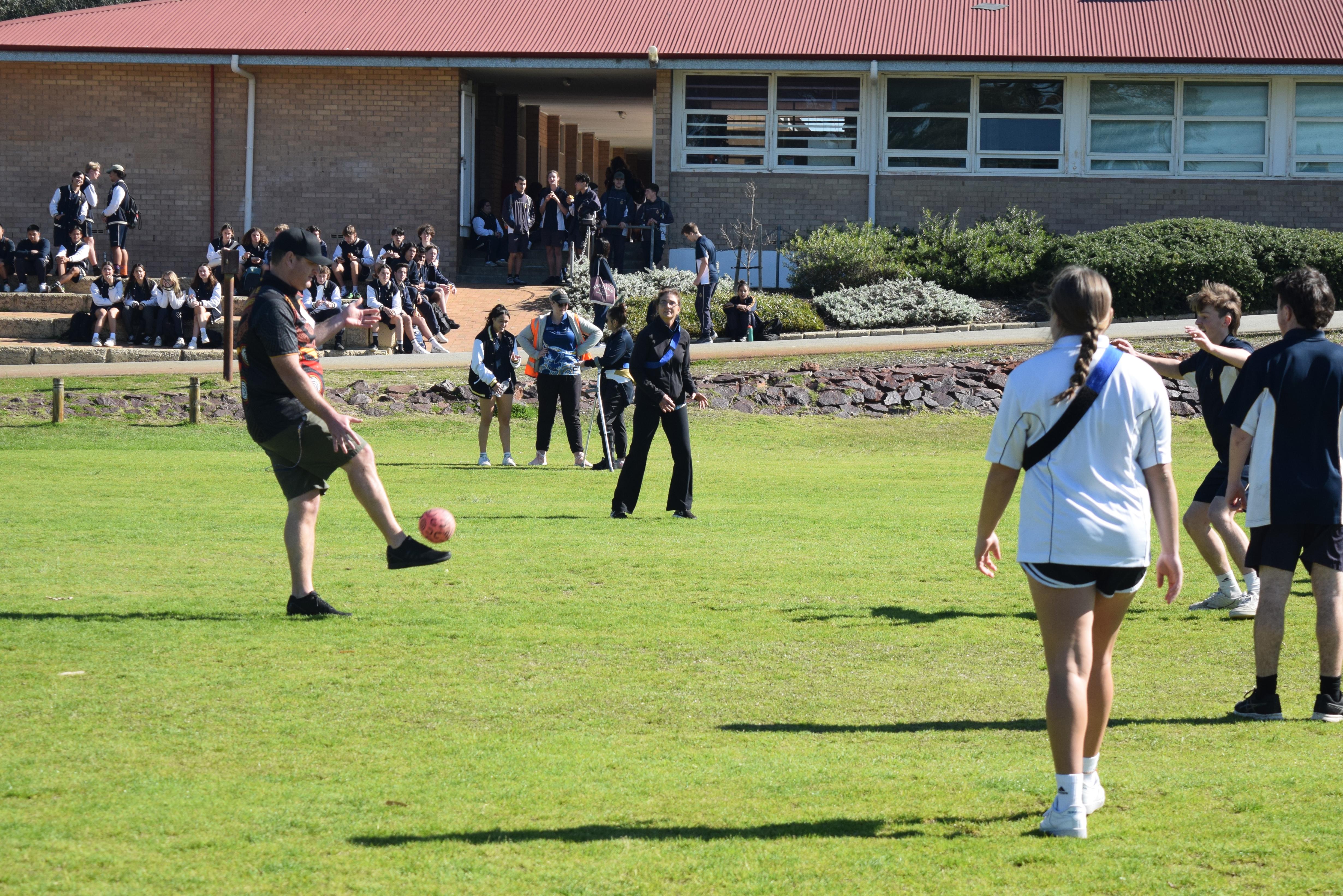 Thursday students and staff competed in a lunchtime game of Marngrook, a form of football originally played by the Indigenous people across the South East of Australia.