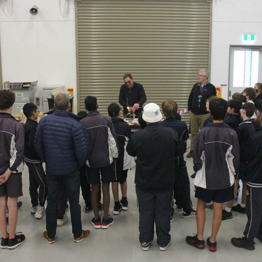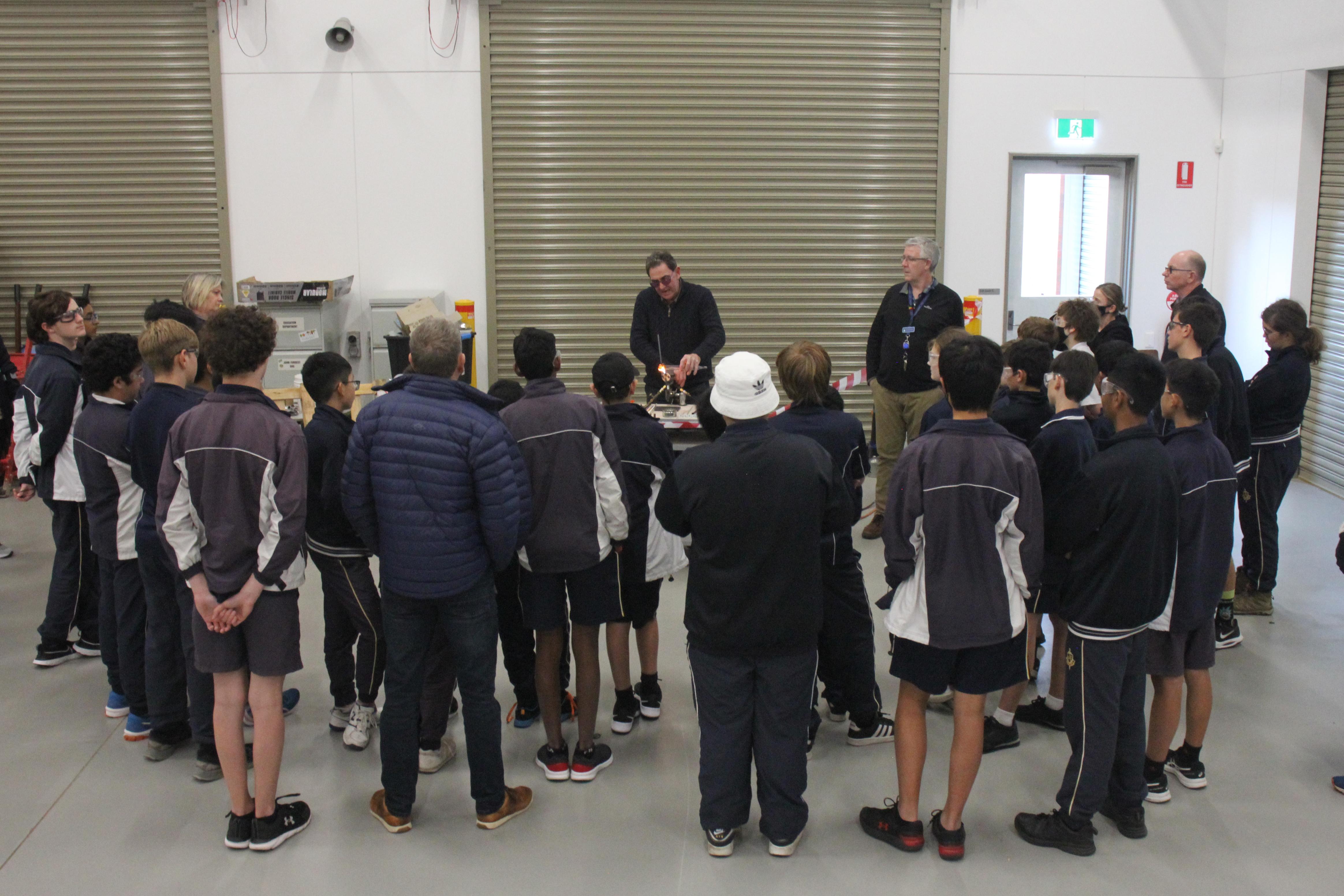 He then went on to show how glass blowing can also be used to create pieces of art, making a clownfish for us, and making a coloured marble for Mr Vinciullo's STEM class for their Rube Goldberg Machine.
