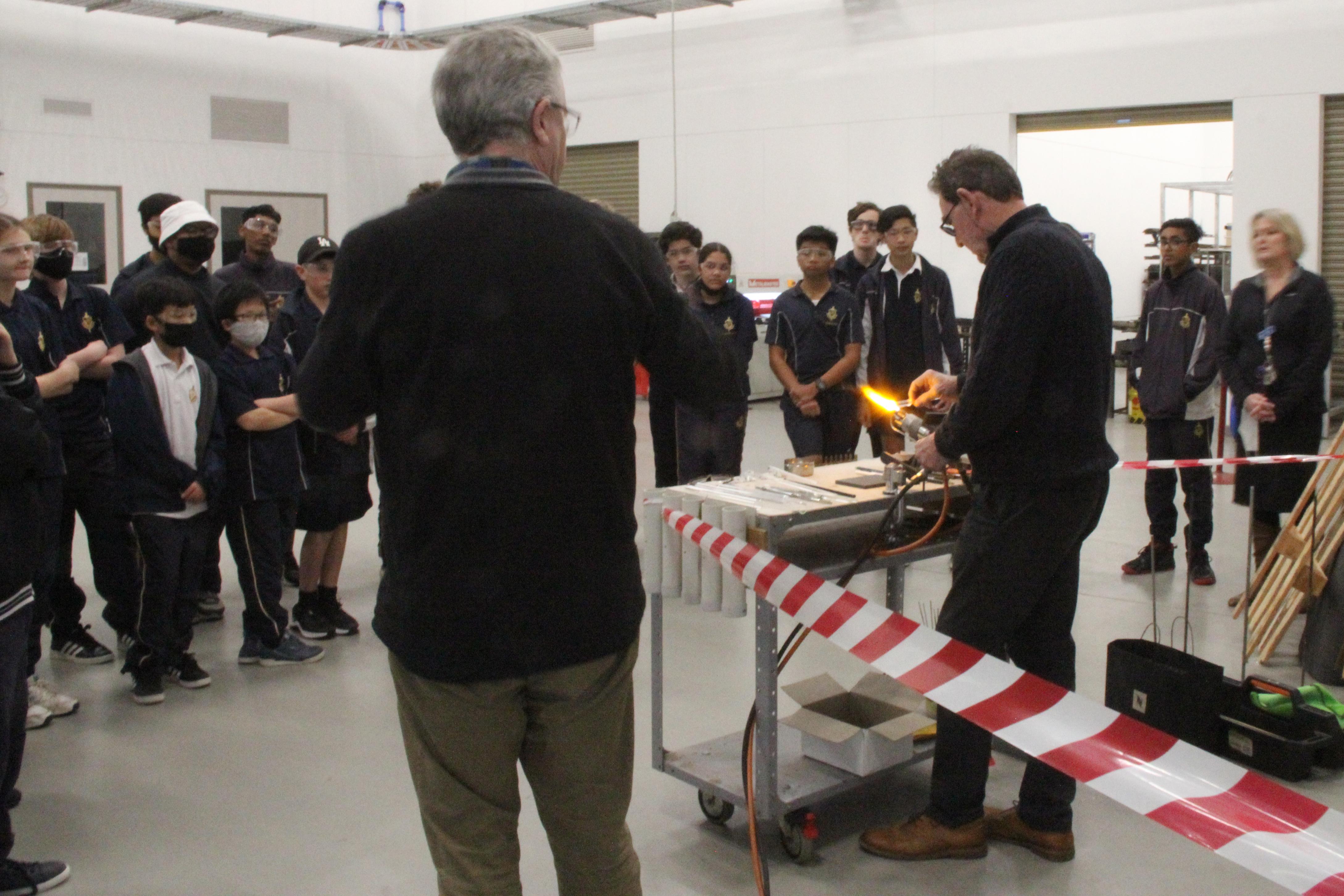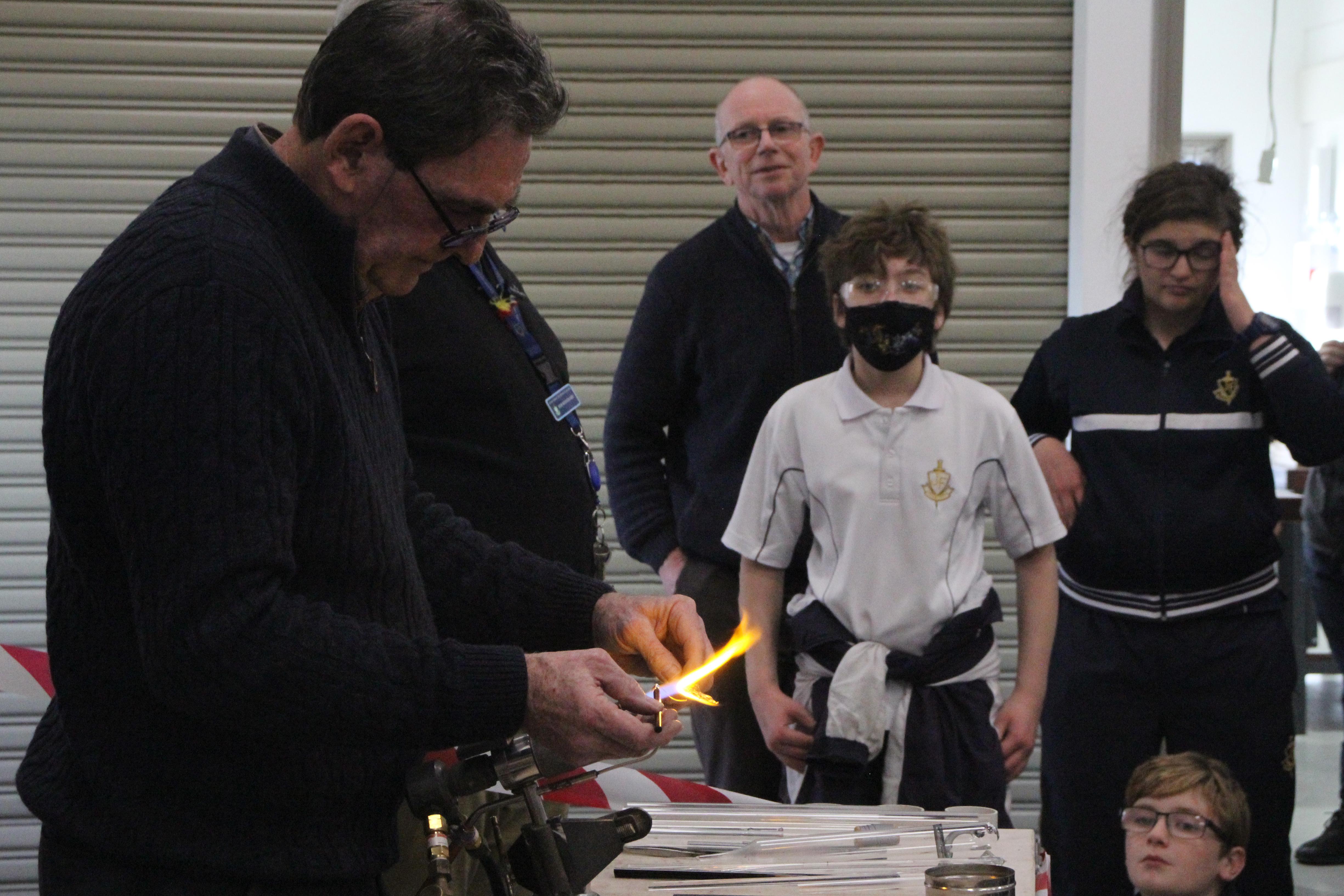 As part of Science Week (11-18 August), the theme of which is Glass this year, the Engineering Club had a demonstration on Wednesday 3 August of Glass Blowing by Mal Parry of Glass Evolutions.